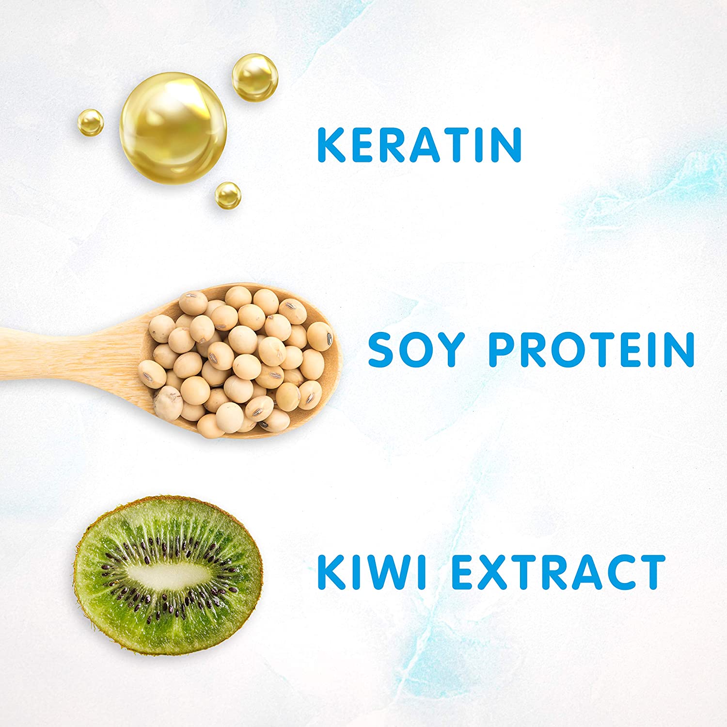 - KEY INGREDIENTS: Keratin, Soy Protein, Kiwi Extract